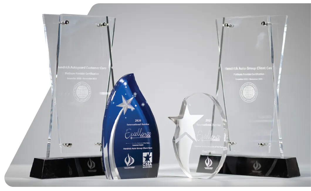 Hendrick Autoguard and Hendrick Automotive Group have earned consistent industry recognition for excellence in customer service, including CSIA Platinum Organization Certification since 2020. Awards from CSIA, ABA Stevie Awards, and USCXA highlight leadership, innovation, and measurable impact across service operations. With seven CSIA International Service Excellence Awards and seven certified Customer Service Managers, the organization continues to set the standard for service excellence in the automotive industry.